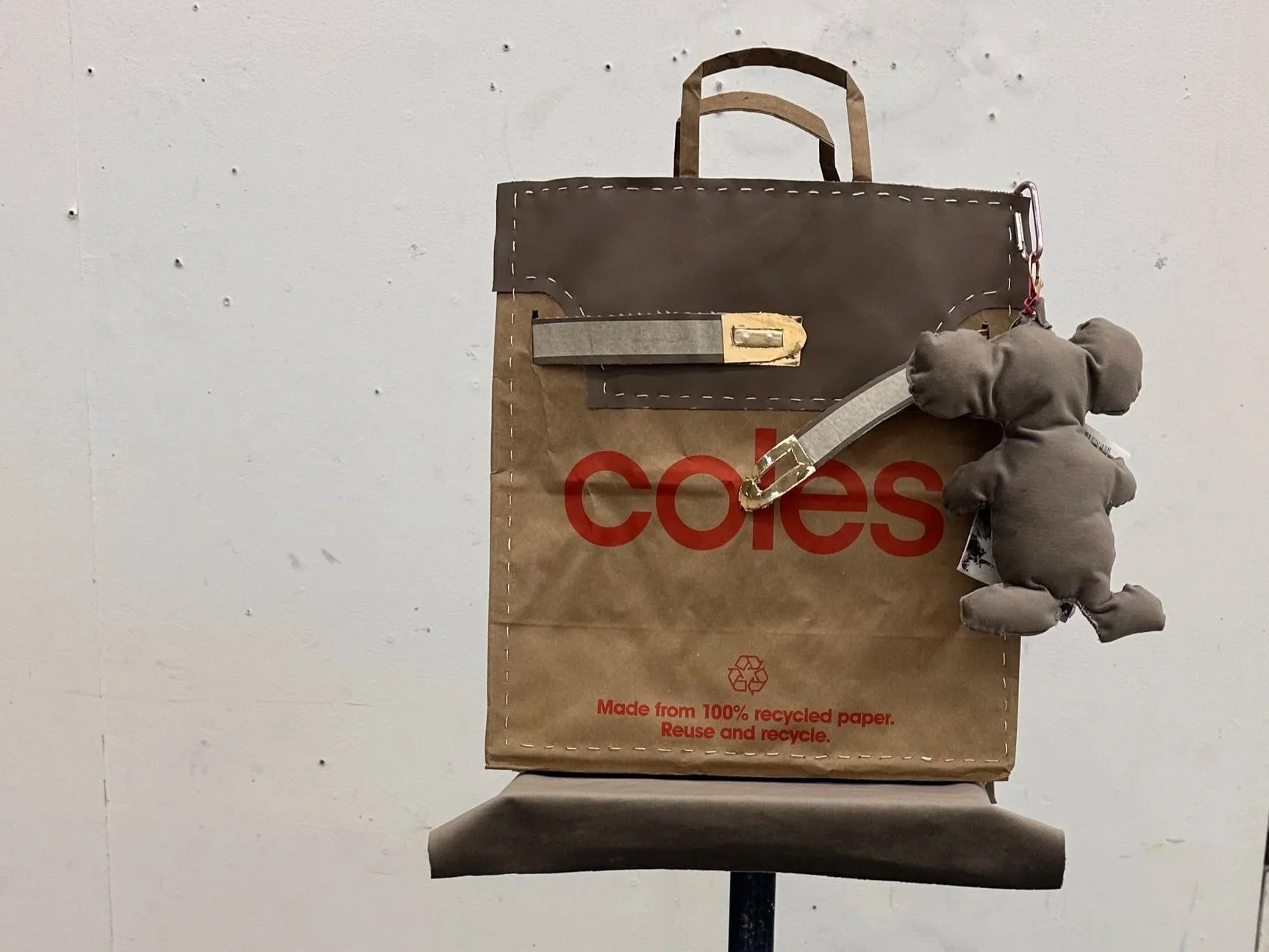 Coles Lux explores the life of everyday objects beyond their original function. Focusing on the COLES paper shopping bag, I transformed it into a luxury object using material and presentation, questioning how value can shift through context. The work reimagines ordinary items, giving them new meaning and narrative.